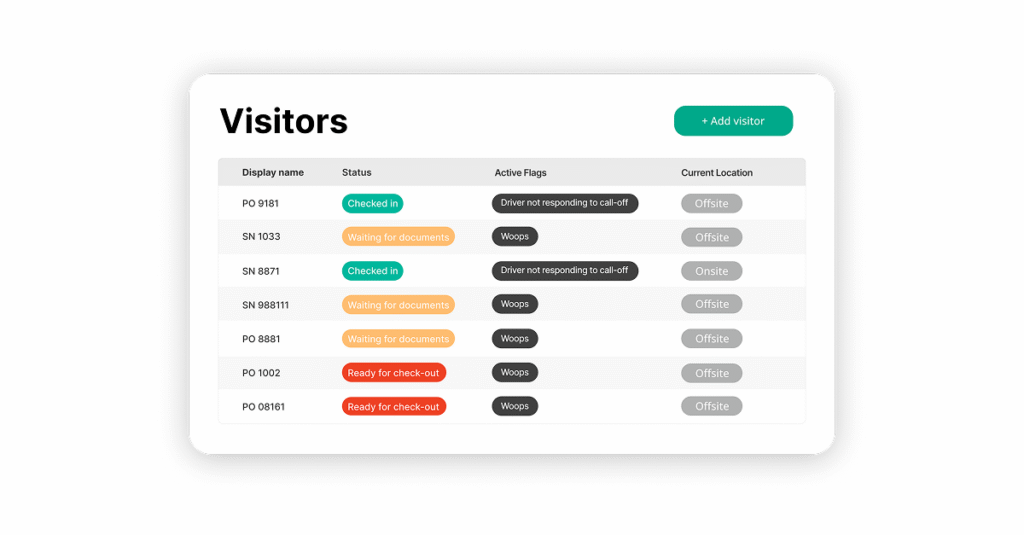 When issues aren’t flagged early, their impact multiplies fast. A single truck blocking a dock can delay multiple vehicles. A visitor stuck in the wrong status can slow down the queue. A missed approval can put follow-up tasks on hold. The result? Stress, wasted time, and reduced control of daily operations.